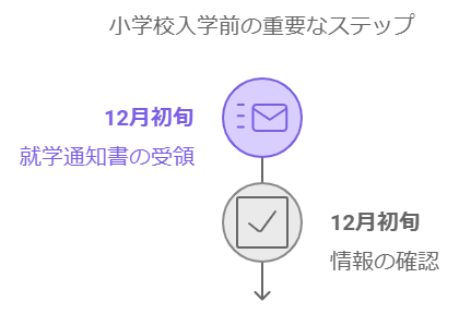 小学校入学前の最初の重要なステップは、就学通知書を受け取ることです。就学通知書は、子どもがどの学校に通うことになるのか、また入学に関する詳細な情報が記載された大切な書類です。この通知書が届くのは通常12月の初め頃であり、早めに受け取って内容を確認することが大切です。通知書には、入学式の日程や、必要書類、学用品の購入時期、学校説明会の日程などが記載されています。これを見落とすと、重要な準備を忘れてしまう可能性があるので、しっかりと目を通して、大切に保管しておきましょう。
