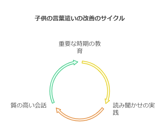 子どもの言葉遣いは、幼少期からの習慣が大きく影響します。以下のポイントを意識することで、将来的に良い言葉遣いを身につける基盤を作ることができます。