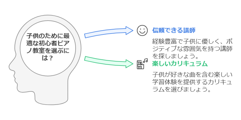 初心者の子供にとって、最初のピアノ講師が楽しいレッスンを提供できるかどうかが重要です。講師が音楽教育に情熱を持ち、子供の成長を見守りながら指導できるかを確認しましょう。