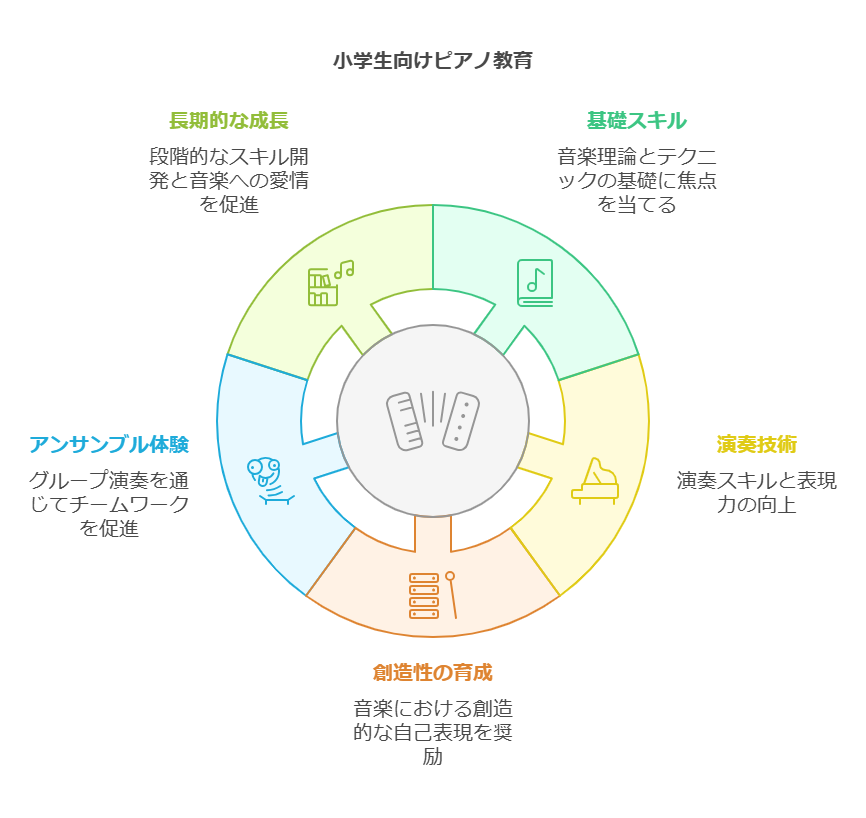 小学生という年齢は、ピアノの基礎をしっかり学ぶ大切な時期です。教室選びでは、子どもの年齢に合った指導方法や、学びたい目的に沿ったプログラムを提供しているかを確認することが重要です。例えば、音楽の基本をしっかり学びながらも、楽しんで学べる内容が盛り込まれている教室が理想的です。