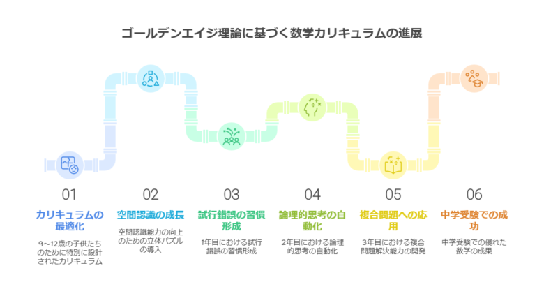 9~12歳の「具体的事象から論理を構築する時期」に最適化したカリキュラム。空間認識能力は10歳までに急成長するため、低学年から立体パズルを導入10。実際、小学3年生から継続した生徒の85%が、6年生時点で最難関中学の図形問題正答率が平均を20%上回ります。