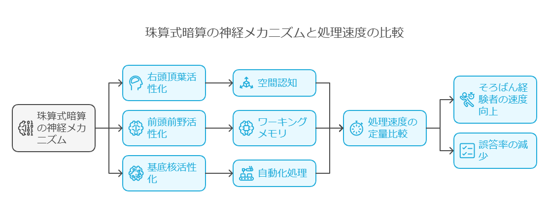 この効果は、珠の配置をイメージする訓練が「視覚的記憶回路」を強化するためと考えられています。