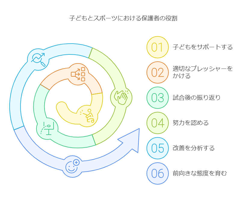 保護者として、子どもに過度なプレッシャーをかけないように注意が必要です。勝利を目指すことは大切ですが、結果よりもプロセスを重視し、子どもが試合を楽しめるようにサポートしましょう。子どもが自分のペースで成長できる環境を整えることが重要です。