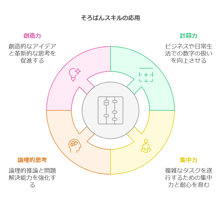 特に、ビジネスシーンでは、創造力と発想力は、企業の成長やイノベーションを牽引する重要な要素です。そろばんを学んだ人々は、数字や物の関係性を深く理解しており、そんな能力が、職場での新しいアイデアや課題解決に役立つでしょう。