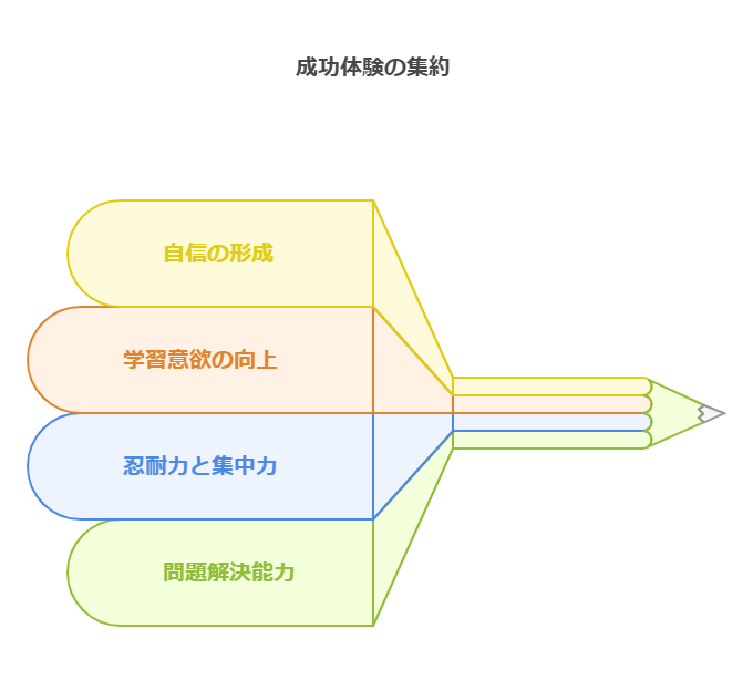成功体験は、子供の学習意欲を高める効果があります。一度成功を経験すると、子供はもっと難しい問題に挑戦したいという意欲を持つようになります。この意欲は、自主的な学習を促進し、長期的な学力向上につながります。