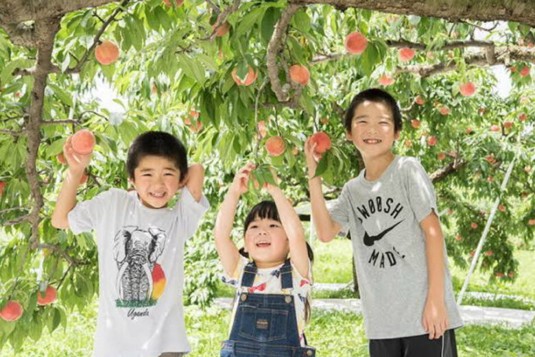 次に、信州フルーツランドでの桃狩りを楽しみます。桃の木の下で、自分の手で甘くてジューシーな桃を収穫する体験は、食の大切さや自然の恵みを実感する素晴らしい機会です。お子さまたちが収穫した桃は、その場で味わい、収穫の喜びとともに、食べ物への感謝の気持ちを育むことができます。