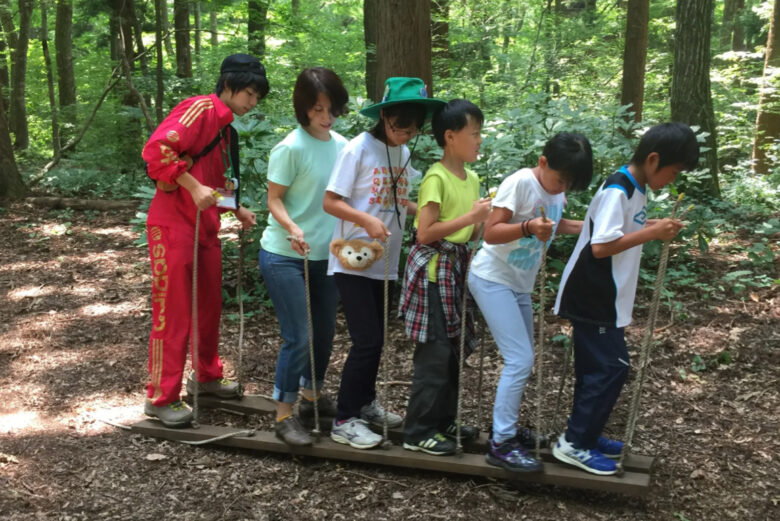たとえば、「森の中で地図を見ながら宝物を探す探検活動」や「限られた材料で橋を作る工作チャレンジ」など。