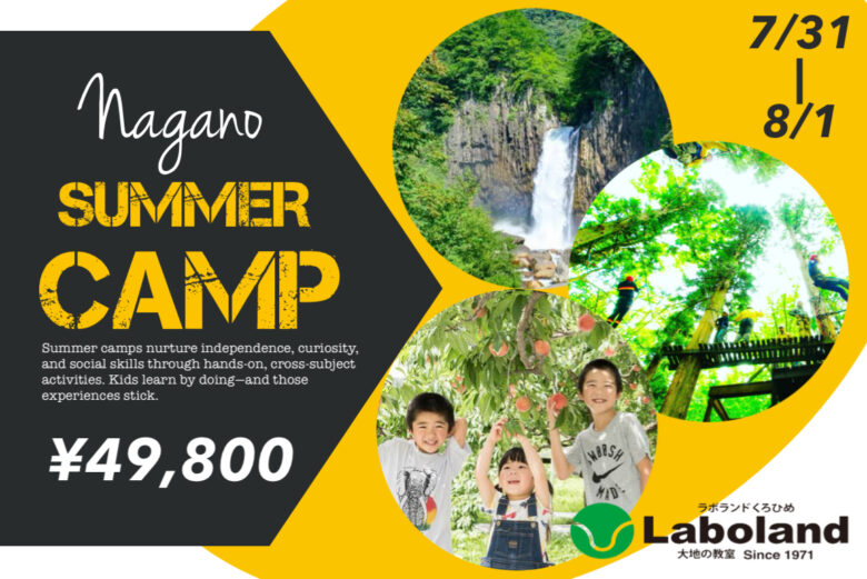 今回のClover Hillサマーキャンプでは、一泊二日の宿泊体験を長野県・信濃町にある自然体験施設「ラボランドくろひめ」で実施します。